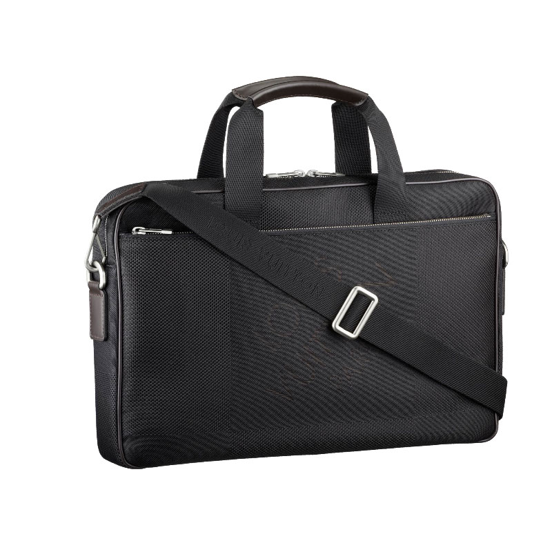 For leisure or business, the Associe PM soft briefcase is perfect for the man about town. The large geometric pattern, aluminium metallic pieces, and modern textiles add to its sophisticated appearance.
