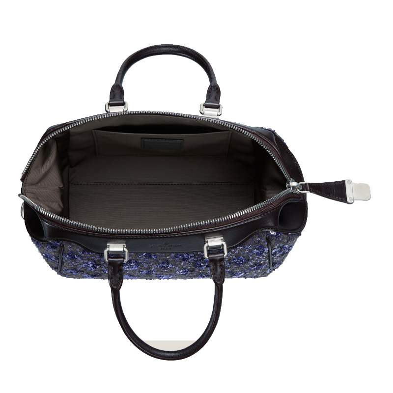Add sparkling colour to any occasion with the Baby in Monogram Sunshine Express. Bright, luminous sequins are meticulously embroidered onto a felt wool base to create a loud, bold bag like no othe