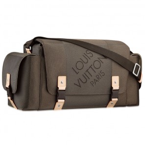 - Damier Geant canvas in technical fibers identical to those used for climbing ropes, canvas strap, calf leather trimmings, hard-wearing canvas lining - Brushed aluminum pieces - Quick release fasteners - Large zippered inner patch pocket - Two large lockable outside patch pockets - Carried on the shoulder - Wide adjustable strap