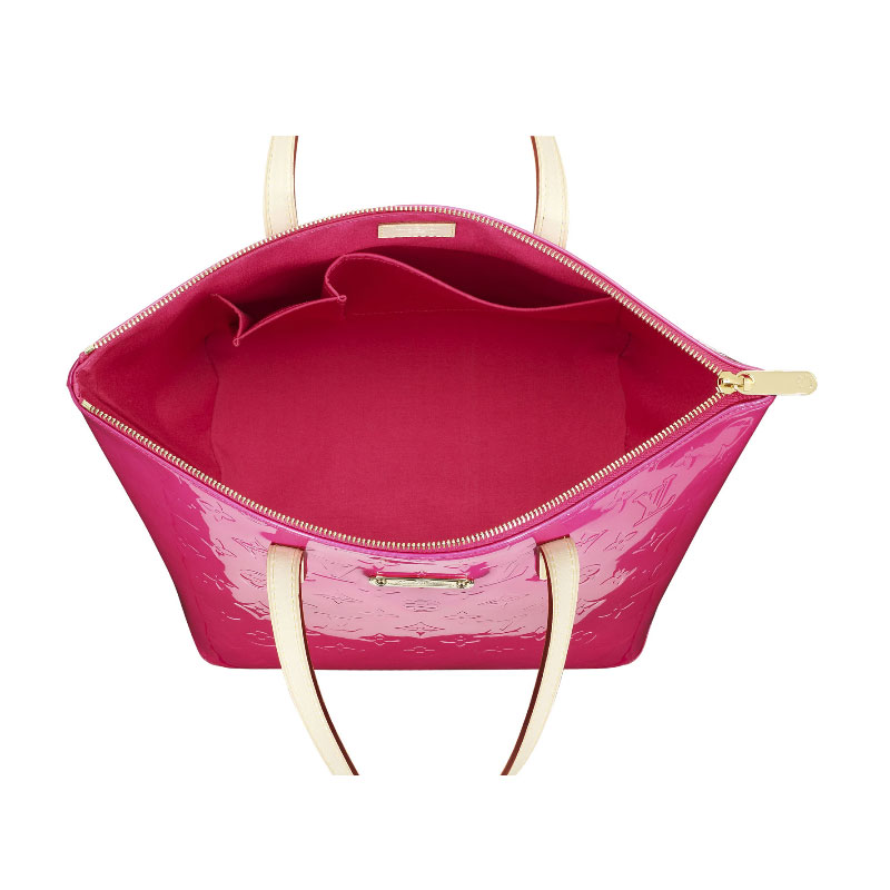 Clean lines and femininity are the hallmarks of this Monogram Vernis leather bag. It can be carried in the hand or on the elbow and comes with a zippered closure. It is ideal for everyday use.