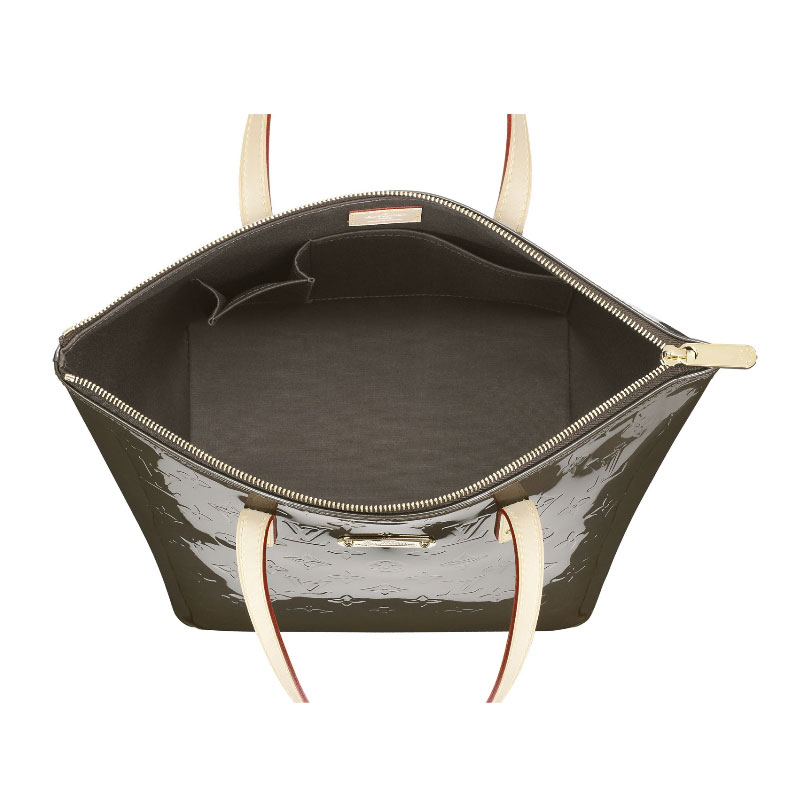 Clean lines and femininity are the hallmarks of this Monogram Vernis leather bag. It can be carried in the hand or on the elbow and comes with a zippered closure. It is ideal for everyday use.