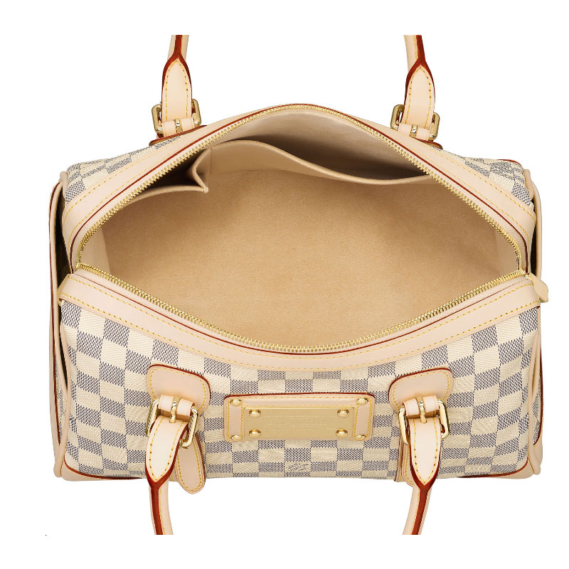 - Damier canvas, microfiber lining, natural cowhide corners and trimmings