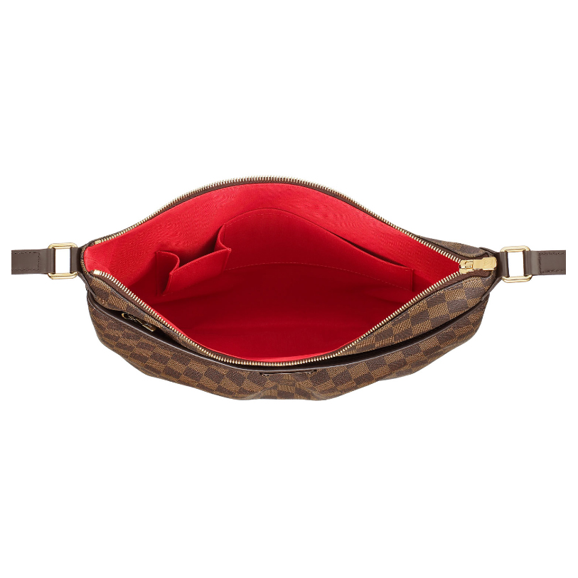 - Damier canvas, textile lining, leather trimmings