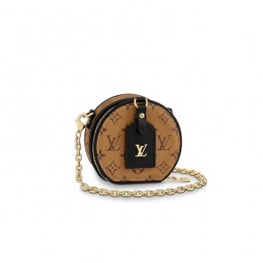Suspended from a golden chain, the Petite Boite Chapeau necklace doubles as an on-trend accessory and tiny pouch for small treasures. Fashioned from Monogram Reverse canvas, it can be worn around the neck or cross-body. The interior, lined with Malletage-print leather, features two gusseted compartments. The LV name tag adds a signature touch.