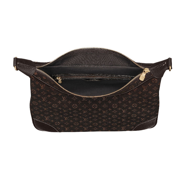 The elegant Boulogne is a casual city bag in Monogram Mini Lin cotton and linen canvas, with a convenient adjustable strap and an inside patch pocket.