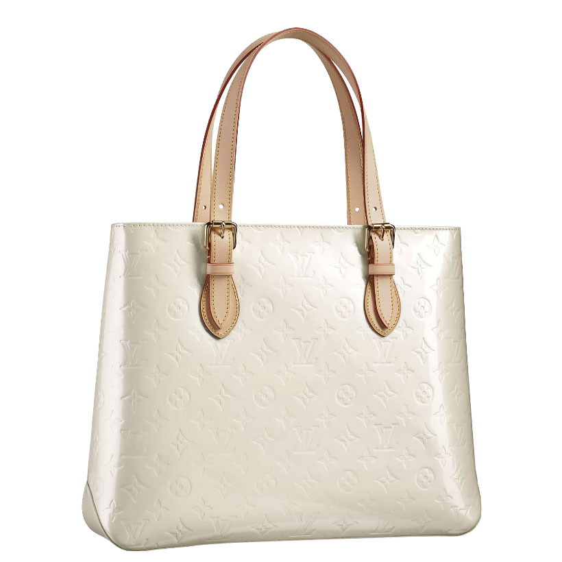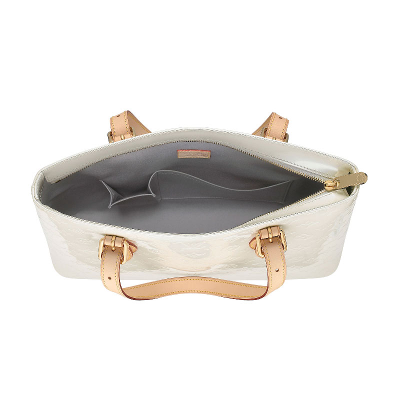 - Discreetly embossed Monogram Vernis leather, natural cowhide strap, textile lining