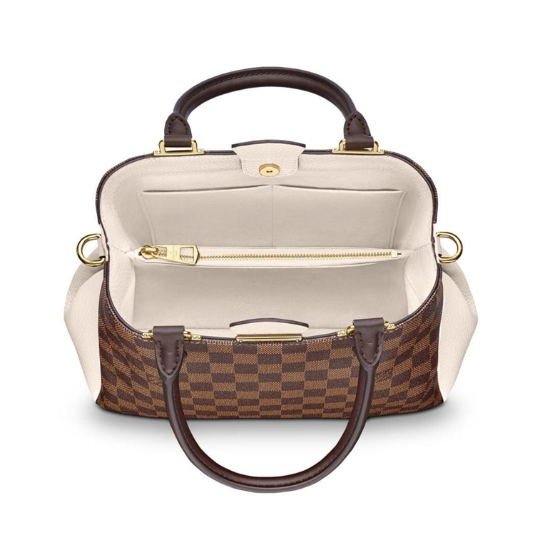 The new status bag from Louis Vuitton. Sophisticated and feminine, the Brittany makes an elegant statement with its contrast pairing of Damier canvas with Cuir Taurillon leather. House craftsmanship shines in the handle mounts, gussets and keybell.