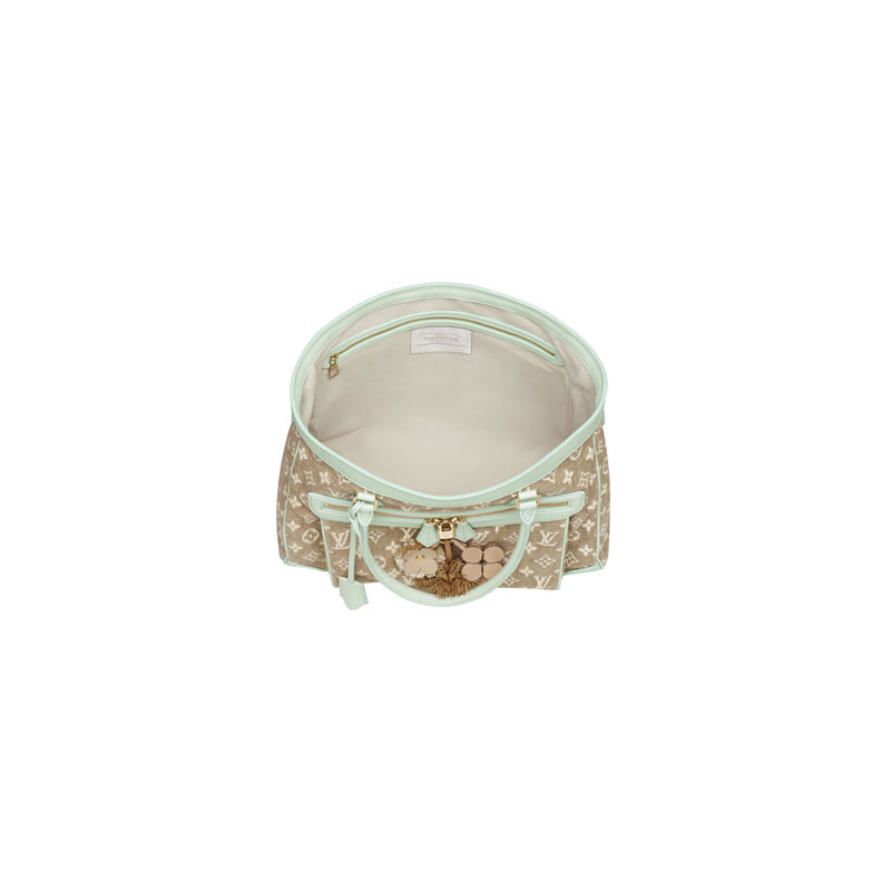 The spacious Cabas GM in cotton jacquard Monogram Sabbia fabric exudes vintage-inspired charm. Eye-catching calfskin leather trimmings and ornate hand-made floral details make it fresh and feminine.