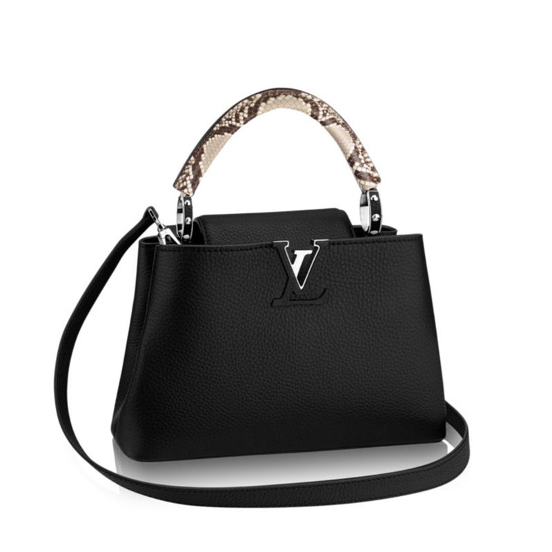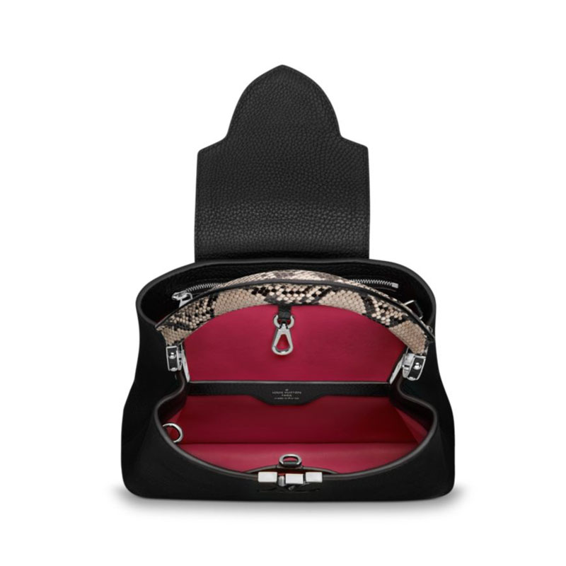 The fashionable mini size of Capucines BB lends an intense pop of contrasting colors to wardrobe styles from classic to daring. The Capucines BB comes with a removable long shoulder strap for casual shoulder or cross-body wear.