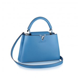 The fashionable mini size of Capucines BB lends an intense pop of contrasting colors to wardrobe styles from classic to daring. Finished with shiny silver color accents, the Capucines BB comes with a removable long shoulder strap for casual shoulder or cross-body wear.