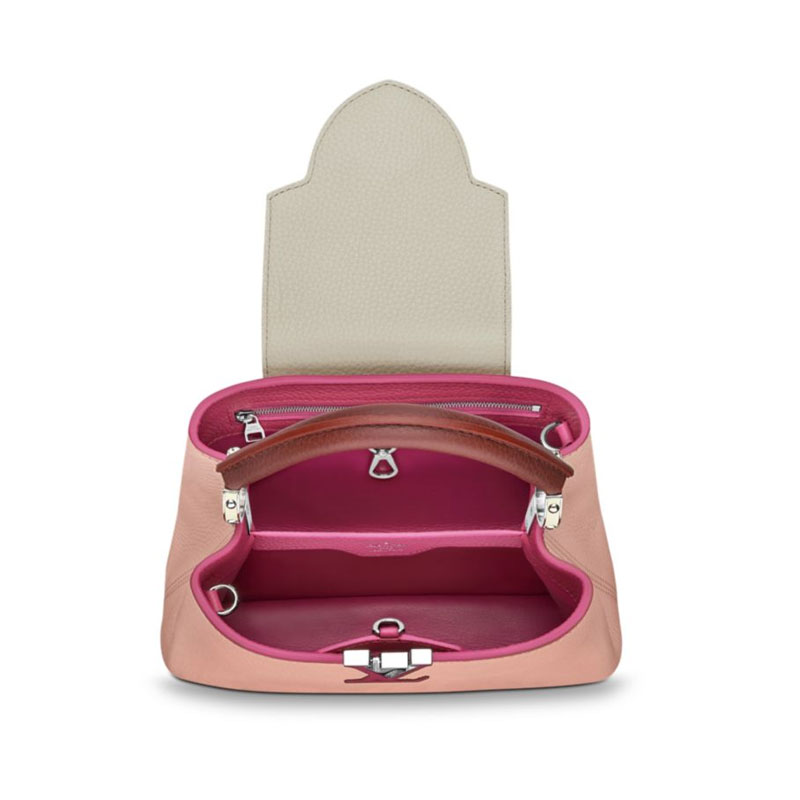 The fashionable mini size of Capucines BB lends an intense pop of contrasting colors to wardrobe styles from classic to daring. Finished with shiny color accents, the Capucines BB comes with a removable long shoulder strap for casual shoulder or cross-body wear.