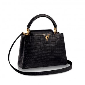 The fashionable mini size of Capucines BB lends an intense pop color to wardrobe styles from classic to daring. In rare and precious crocodile skin, it combines refined details, including a semi-rigid handle secured by jewel-like rings, with a functional shape. The Capucines BB comes with a removable long shoulder strap for casual shoulder or cross-body wear.