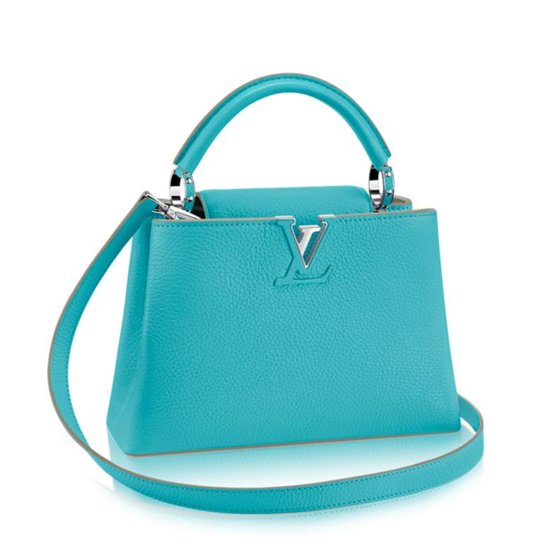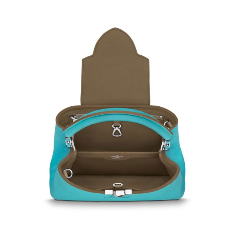 The fashionable mini size of Capucines BB lends an intense pop of contrasting colors to wardrobe styles from classic to daring. Finished with shiny silver color accents, the Capucines BB comes with a removable long shoulder strap for casual shoulder or cross-body wear.