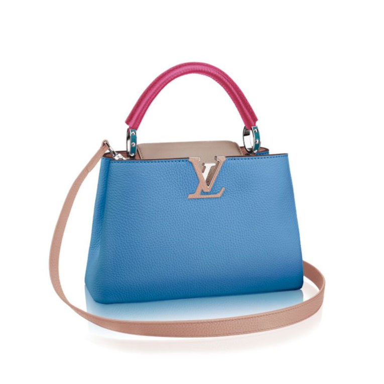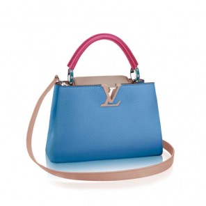 The fashionable mini size of Capucines BB lends an intense pop of contrasting colors to wardrobe styles from classic to daring. Finished with shiny silver color accents, the Capucines BB comes with a removable long shoulder strap for casual shoulder or cross-body wear.