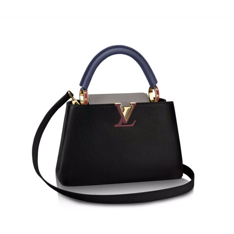 New this season, the Capucines BB in Noir tells an elegant color story: the soft burgundy-gray of the signature flap is a subtle counterpoint to the black Taurillon leather, for an effect as versatile as a neutral, but with a fashion-forward twist.