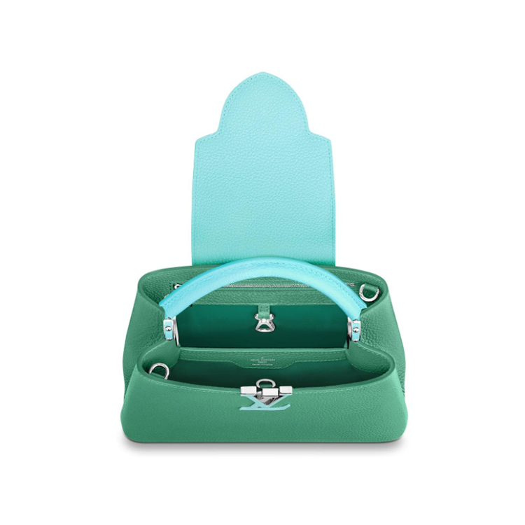 Dressed in fresh, feminine new colorways for spring, the season’s Capucines models display delicate contrasts. In sizes to suit every need or silhouette, these now-classic handbags are crafted of full-grain Taurillon leather lined with smooth calfskin.