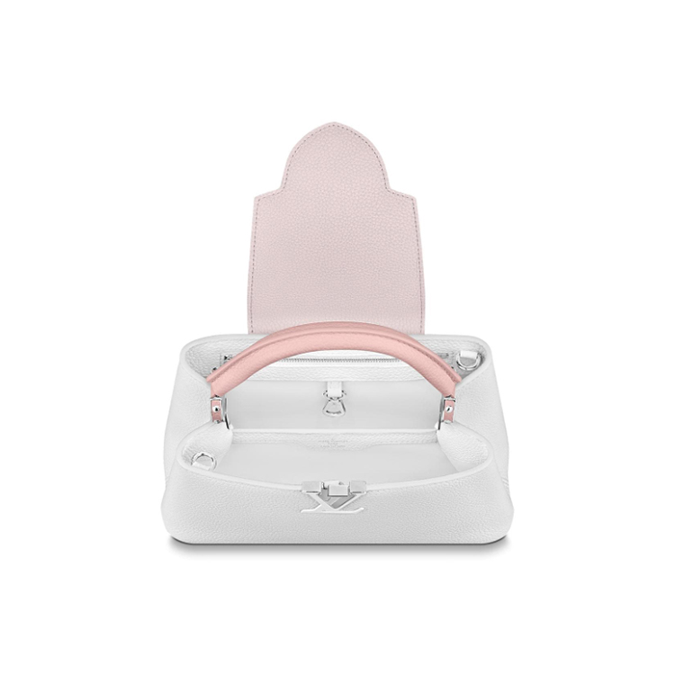 Dressed in fresh, feminine new colorways for spring, the season’s Capucines models display delicate contrasts. In sizes to suit every need or silhouette, these now-classic handbags are crafted of full-grain Taurillon leather lined with smooth calfskin.