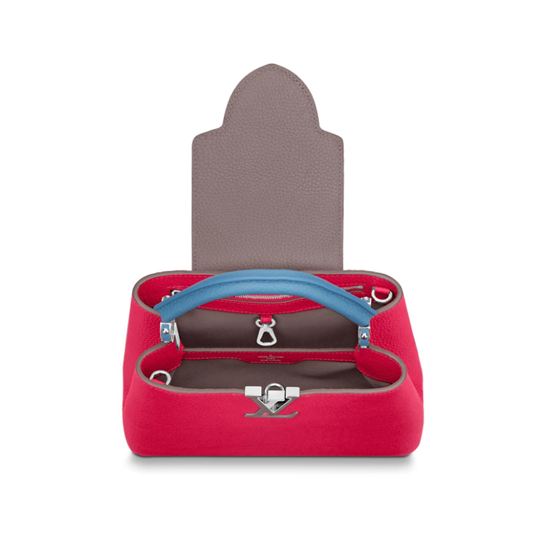 Dressed in fresh, feminine new colorways for spring, the season’s Capucines models display delicate contrasts. In sizes to suit every need or silhouette, these now-classic handbags are crafted of full-grain Taurillon leather lined with smooth calfskin.