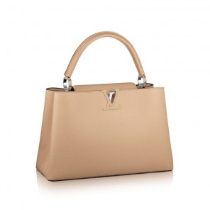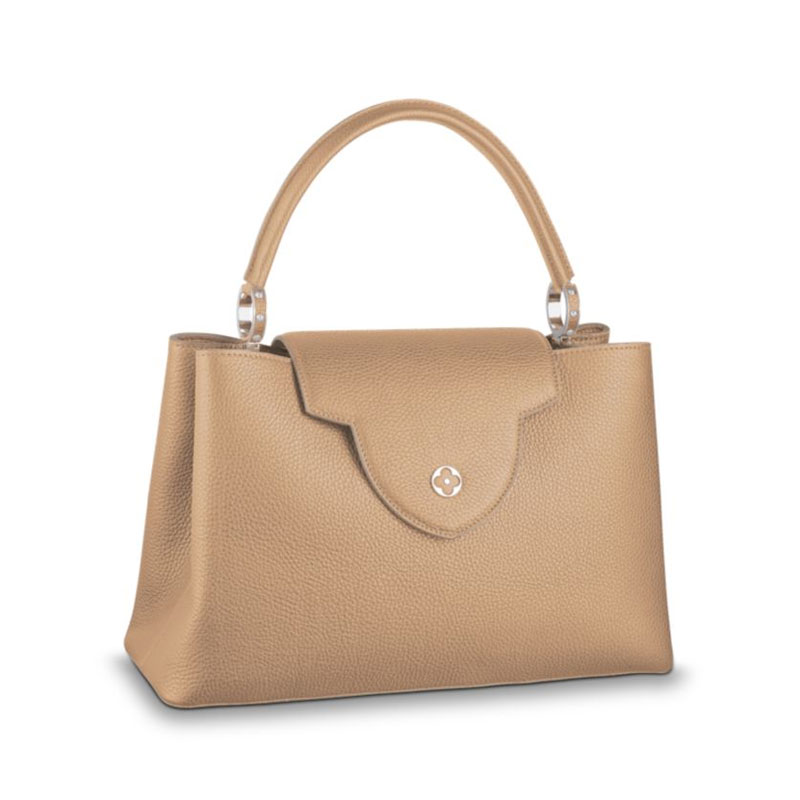 Taking its name from the Rue des Capucines in Paris, where Louis Vuitton opened his first store in 1854, the timelessly elegant Capucines bag is a testament to fine leather craftsmanship. In full-grain Taurillon leather, it combines refined details, including a semi-rigid handle secured by jewel-like rings, with a spacious and functional shape offering two inside compartments. Its distinctive flap can be worn two ways: outside to reveal the outline of a Monogram flower, or inside to show the LV initials.