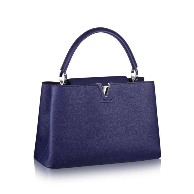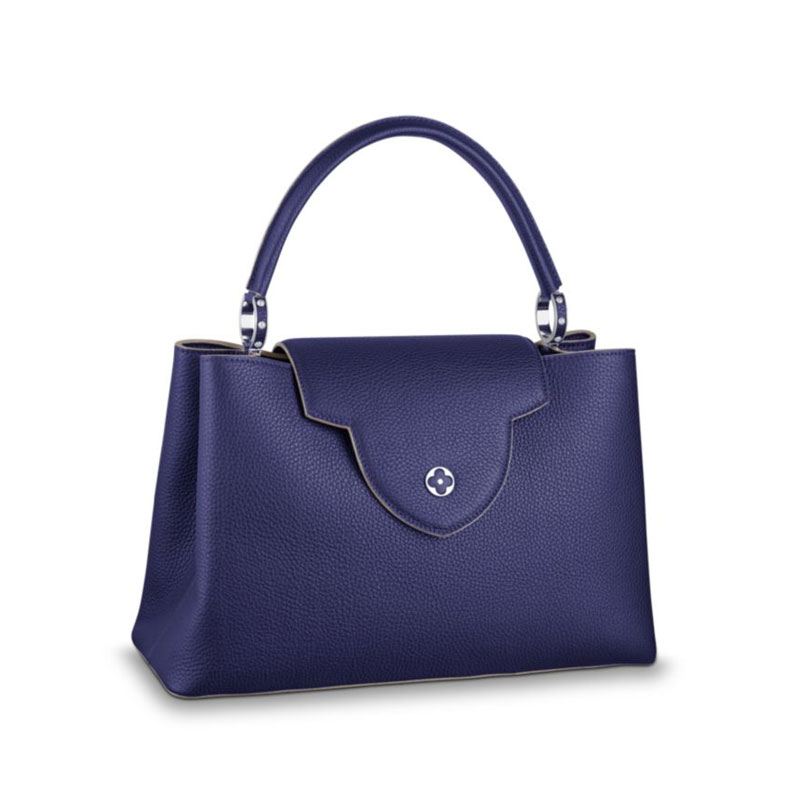 Taking its name from the Rue des Capucines in Paris, where Louis Vuitton opened his first store in 1854, the timelessly elegant Capucines bag is a testament to fine leather craftsmanship. In full-grain Taurillon leather, it combines refined details, including a semi-rigid handle secured by jewel-like rings, with a spacious and functional shape offering two inside compartments. Its distinctive flap can be worn two ways: outside to reveal the outline of a Monogram flower, or inside to show the LV initials.