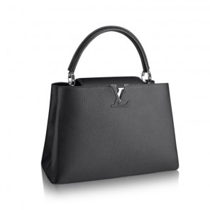 Taking its name from the Rue des Capucines in Paris, where Louis Vuitton opened his first store in 1854, the timelessly elegant Capucines bag is a testament to fine leather craftsmanship. In full-grain Taurillon leather, it combines refined details, including a semi-rigid handle secured by jewel-like rings, with a spacious and functional shape offering two inside compartments. Its distinctive flap can be worn two ways: outside to reveal the outline of a Monogram flower, or inside to show the LV initials.