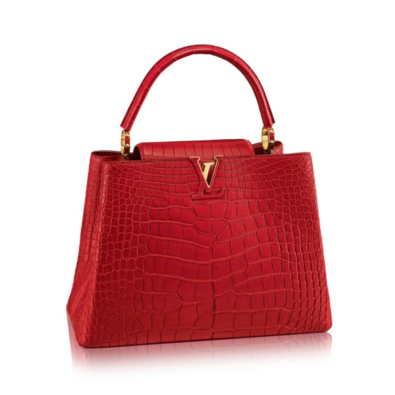 Taking its name from the rue des Capucines in Paris, where Louis Vuitton opened his first store in 1854, the Capucines bag is a testament to exceptional leather craftsmanship. In rare and precious crocodile skin, it combines refined details, including a semi-rigid handle secured by jewel-like rings, with a spacious, functional shape. Its distinctive flap can be worn in two ways: outside to reveal the outline of a Monogram flower, or inside to show the LV initials.
