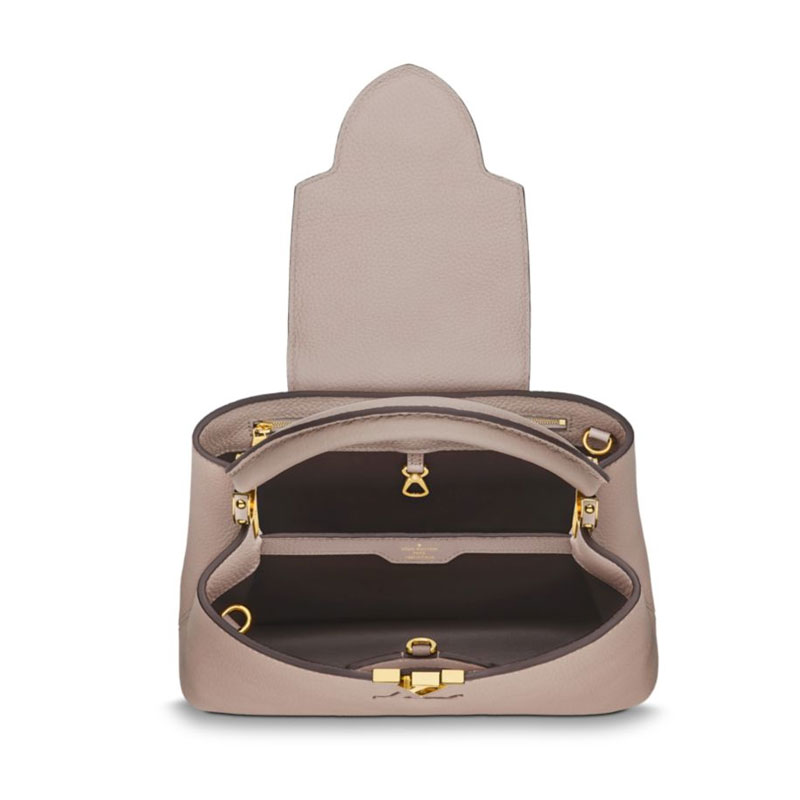 The fashionable mini size of Capucines PM lends an intense pop of contrasting colors to wardrobe styles from classic to daring. Finished with shiny color accents, the Capucines PM comes with a removable shoulder strap for casual shoulder or cross-body wear.