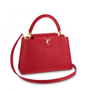 Taking its name from the Rue des Capucines in Paris, where Louis Vuitton opened his first store in 1854, the elegant Capucines PM bag is a testament to fine leather craftsmanship. In full-grain Taurillon leather, it combines refined details, including a semi-rigid handle secured by jewel-like rings. Its distinctive flap can be worn two ways: outside to reveal the outline of a Monogram flower, or inside to show the LV initials. The Capucines PM comes with a removable long shoulder strap for casual shoulder or cross-body wear.