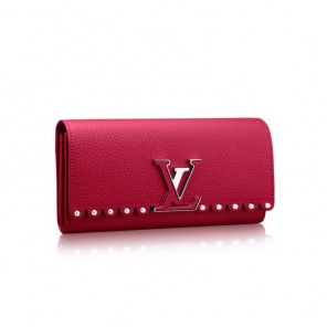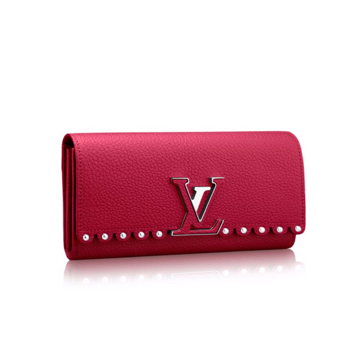 Matching the emblematic Capucines bag, this statement wallet is given a feminine twist by refined scalloped edging inspired by couture lace, which also recalls the petals of Louis Vuitton's Monogram flowers. Its sleek design is large enough to hold all everyday essentials.