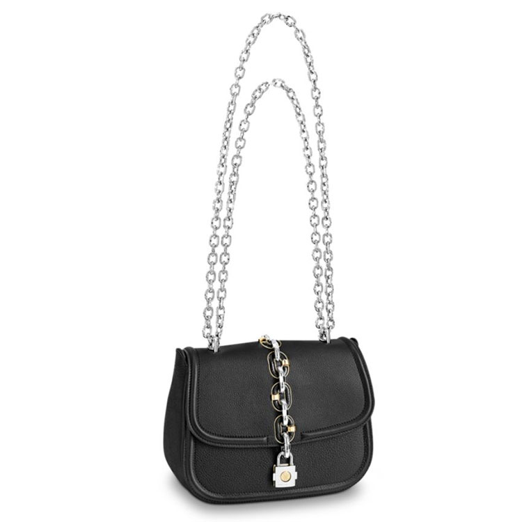 This perfectly proportioned new version of Nicolas Ghesquiere’s Chain-It is made of supple calf leather, with all of the original’s signature details: a bold, trompe l’oeil chain on the flap, the padlock “button” closure and (new for SS 18) a long, sliding chain strap.
