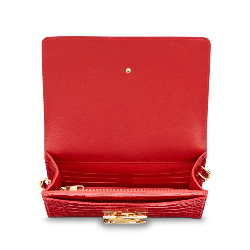 The Chain Louise exudes sophistication in beautiful crocodile leather. Adding a golden chain to its minimalist shape means it can be carried on the shoulder at any function, day or night.