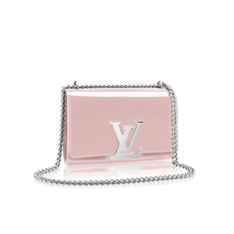 A perfect choice for both day and evening, the Chain Louise in glossy patent calfskin is given a precious and feminine touch by its chain and LV initials clasp. It can be carried in the hand as a clutch or on the shoulder, while its functional interior holds all everyday essentials.