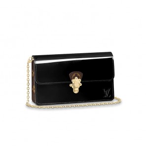 The Cherrywood chain wallet combines patent calf leather with Monogram canvas in an elegant design which can be used either as a wallet or, thanks to its removable chain, as a small shoulder or cross-body bag. Large enough to carry essentials, it features a clasp inspired by the locks of Louis Vuitton trunks.