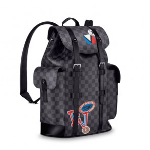 This Christopher PM backpack explores and reinvents Louis Vuitton鈥檚 history, making the old new again with vintage LV travel stickers taking on college feel thanks to the imagination of Kim Jones.