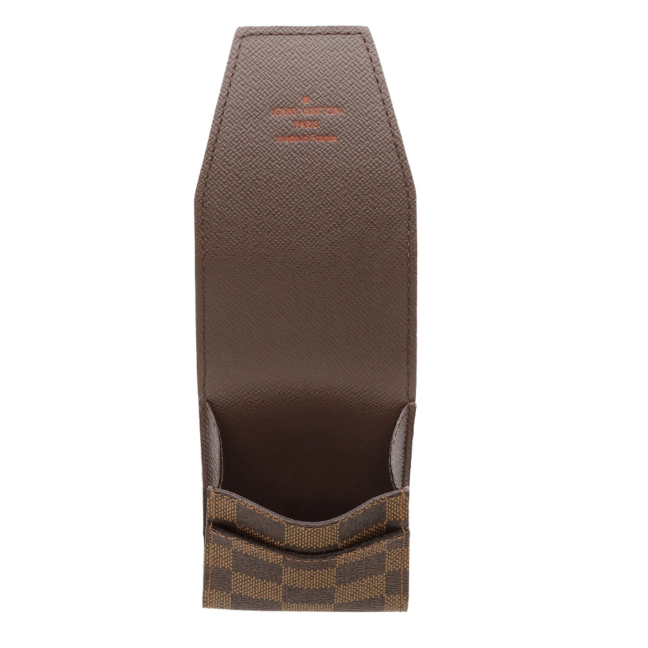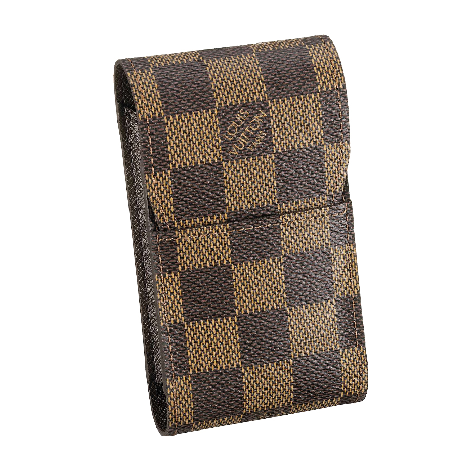 The flap of this cigarette case in Damier canvas slips securely into the base to create an elegant holder that protects your cigarettes.