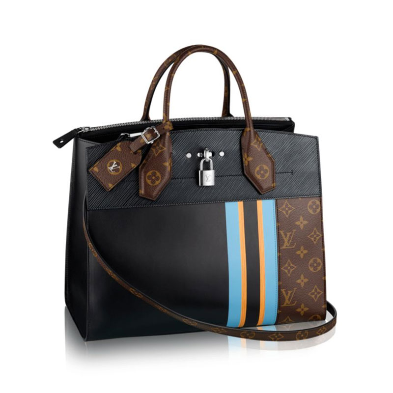 Color-block stripes link this covetable bag to House heritage: reprised from custom trunks, the motif was a key story from the SS 16 runway. Supreme craftsmanship meets style innovation in the mix of smooth calfskin, Monogram canvas and rock studs.