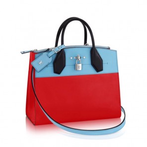 Bright colorblocks give this new version of the City Steamer a sporty spin. Crafted of smooth Veau Satin calfskin, the graphic PM model brings a bold touch to any look