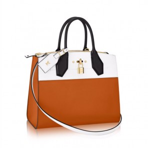 Bright colorblocks give this new version of the City Steamer a sporty spin. Crafted of smooth Veau Satin calfskin, the graphic PM model brings a bold touch to any look