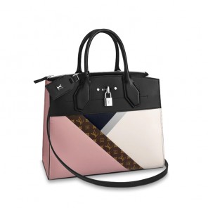 For Spring-Summer 2019, the City Steamer MM handbag is fashioned from printed calfskin leather in a bold patchwork, signed with the House's new Monogram Tape detail in a very graphic way. This versatile bag has two stitched-handle mounts for hand carry and a removable leather strap for comfortable over-the-shoulder wear.