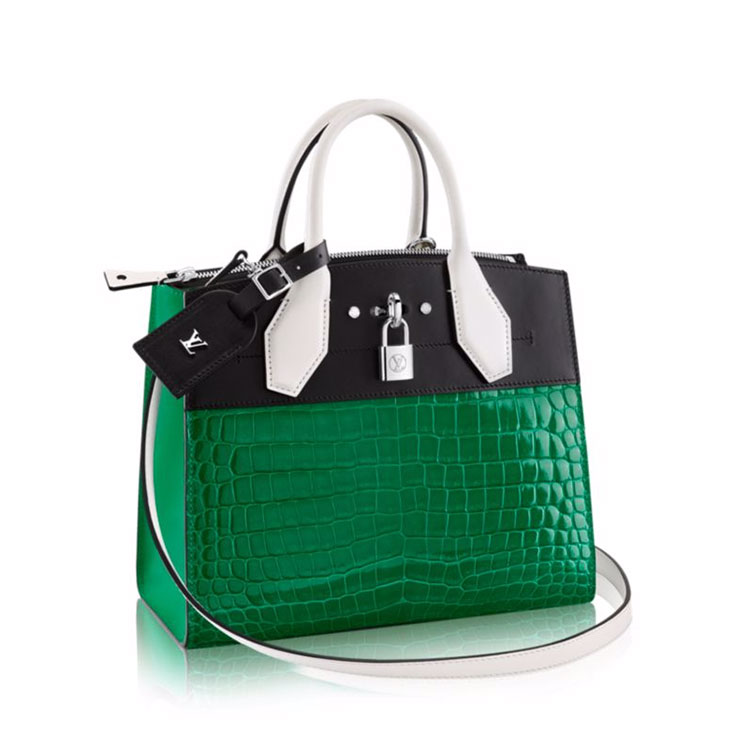 Inspired by Louis Vuitton luggage created in 1901, the new City Steamer features a luxurious mix of glossy croco leather and smooth, contrasting calfskin. Sophisticated signature details – note the padlock and nametag – enrich this heirloom-quality piece.