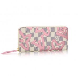 The elegant and delicate Clemence Wallet is given a fresh and feminine feel for summer in Damier Azur canvas overlaid with a splashy Monogram print adapted from the Louis Vuitton archives.