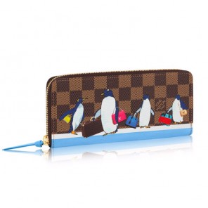 Meet the Clemence Wallet, compact yet with high capacity. This zipped wallet with its lovable penguins strutting on the catwalk, fancy Louis Vuitton bags in their hands, is a joyful vision of elegance.