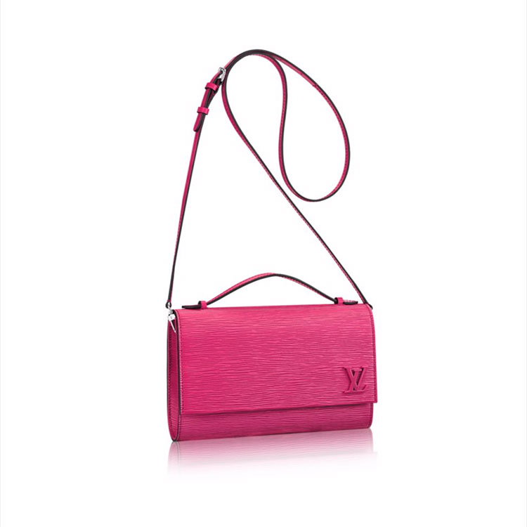 A bag to fit any mood or silhouette, the new Cl茅ry Pochette in Epi leather can be worn on the shoulder, cross-body (merci, adjustable strap) or carried by the finely detailed top handle. Surprisingly roomy, it is offered in a bouquet of fashionable shades.