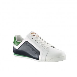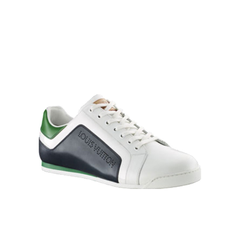This stylish urban sneaker features graphic patent leather trim in bold block Colors and an outsize perforated Louis Vuitton signature.