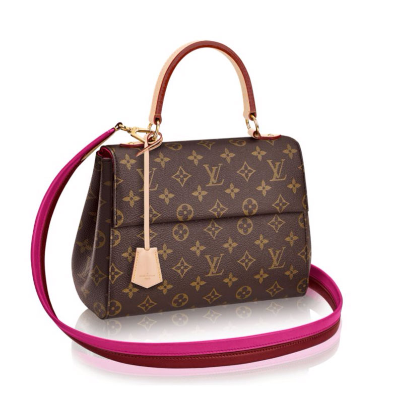 The bag鈥檚 pure, structured silhouette is timeless and the lively colour strap totally on-trend. The Cluny is practical as well, an ideal bag for business, with its top handle for hand or elbow carry and a removable strap for over-the-shoulder wear. A magnetic closure keeps personal effects secure in the well-organized interior pockets.