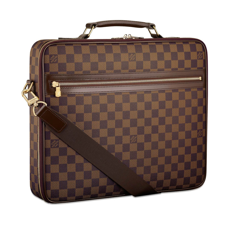 The Sabana computer case in Damier canvas holds laptop, cell phone and accessories with ease.