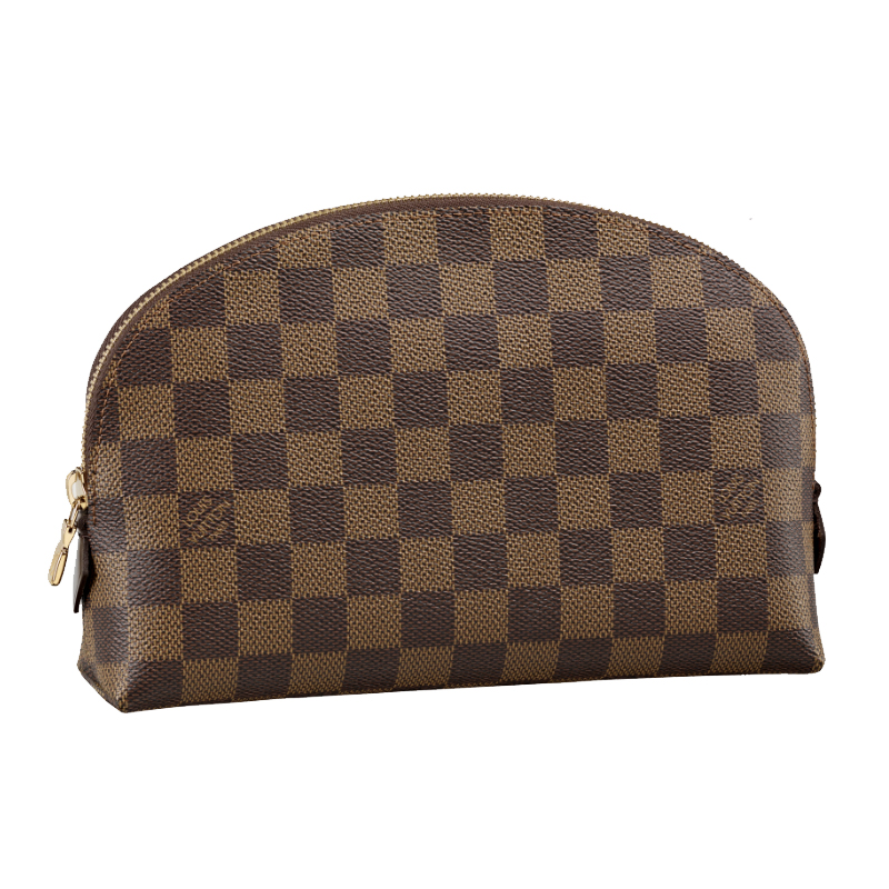 -Cowhide leather trimmings-Shiny golden brass hardware-Wide, zipped opening-2 interior flat pockets-Lipstick compartment