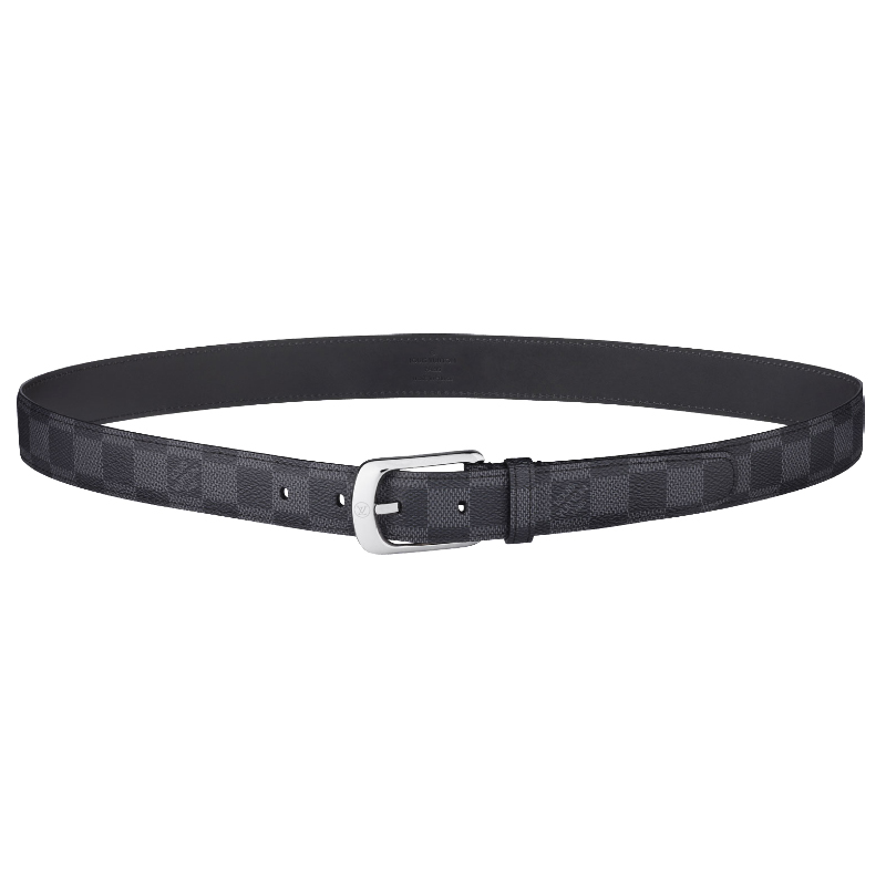 The classic, stylish Ellipse belt in Louis Vuitton's urban Damier Graphite canvas features a softly rounded buckle engraved with the LV initials.
