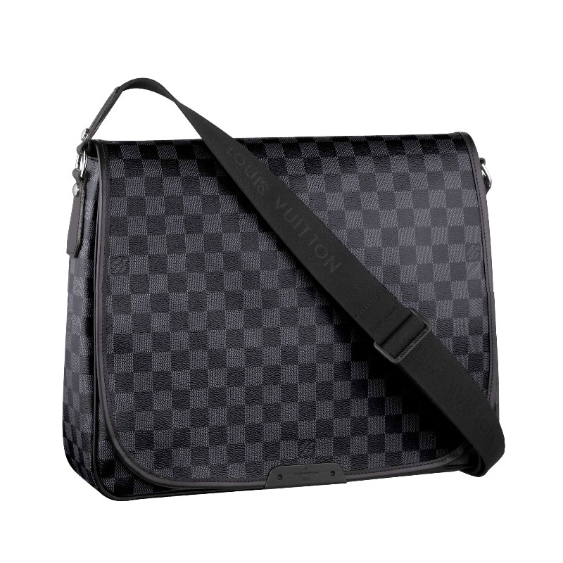 Fashioned in resistant Damier Graphite canvas with leather trim, this city bag combines executive chic with attitude.