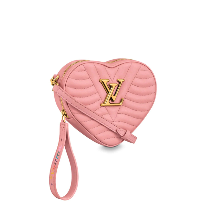 The New Wave Heart Bag handbag is a heart-shaped bag in quilted calf leather, signed with LV Initials in aged-gold finish. Its playful shape is complemented by the colorful “Vuitton” on the handle. Compact and functional, it can be carried by hand with its removeable handle, cross-body thanks its leather strap, or on the waist with its belt loop.